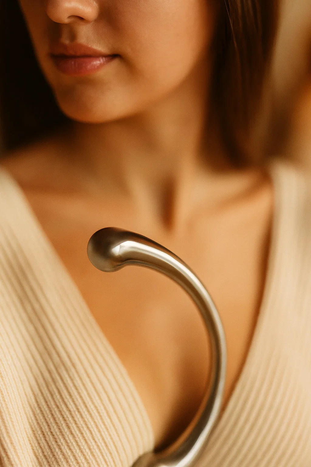 Silvette’s strength lies in its shape and weight working together. The bow curve gives leverage - letting you press with intention or rock with rhythmic ease. Each ball offers a distinct sensation: the smaller tip for precise, awakening focus, and the larger for broad, anchored touch. Instead of forcing pressure with your hands, Silvette’s natural heft allows you to relax and let gravity work for you.